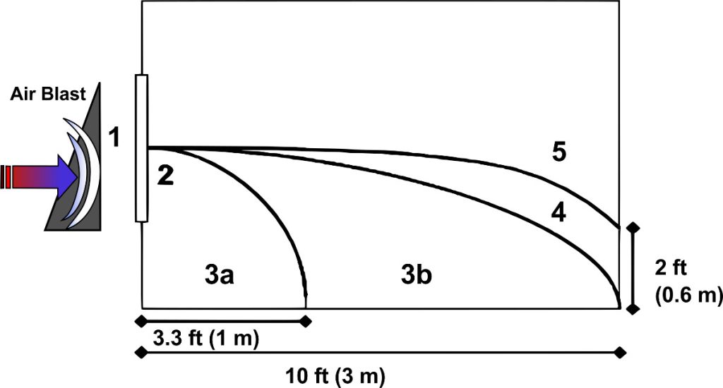 | 3a | High | Very Low | Glazing cracks. Fragments enter space and land on floor no further than 3.3 feet from the window. |