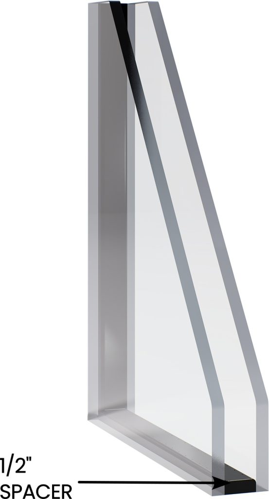 The sightline is the edge dimension of the insulating glass unit covered by the spacer. Insulating glass in a conventionally glazed system typically utilizes a 1/2″ sightline.